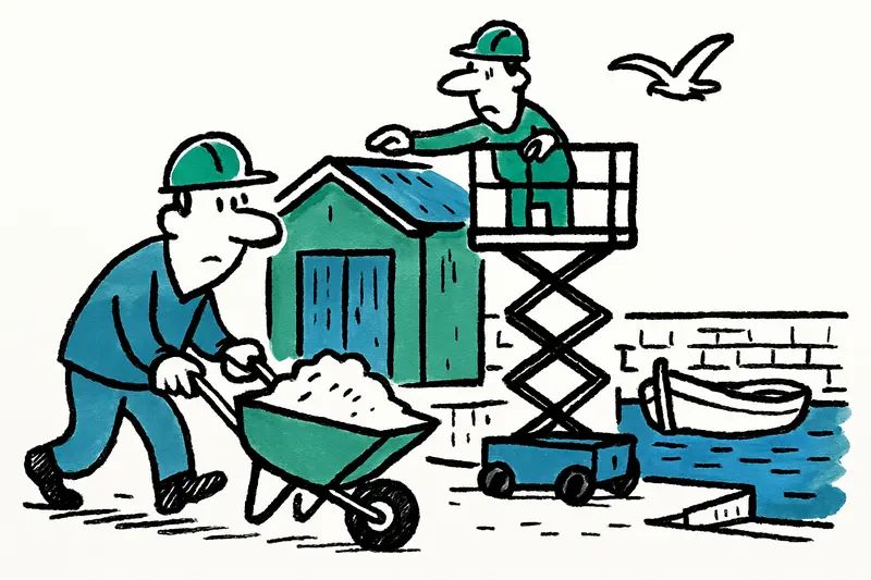 Si uno se sitúa en una mañana sin viento en el puerto de Portocolom — Wikipedia, se mezclan el olor del mar y del mortero fresco. Artesanos con chaquetas curtidas empujan carretillas, los barcos se mecen suavemente y las gaviotas luchan contra la suave brisa del noroeste. En varios puntos se ven andamios, plataformas elevadoras y obreros: no el bullicio habitual del verano, sino trabajos concretos sobre algo que para muchos aquí es importante: las antiguas casetas de pescadores y el muelle.