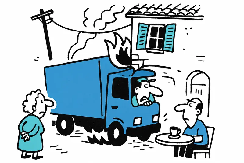 The scene: shutters clatter, an elderly woman watches from the plaza, espresso cups keep rolling in a corner café, the smell of diesel mixes with the faint scent of burning from the cargo area. We know these images on the island — narrow streets, historic houses close to the roadway, and then a vehicle that doesn't really fit the scene, as in How does a truck end up on the cloister steps? Sóller mishap reveals a systemic gap.